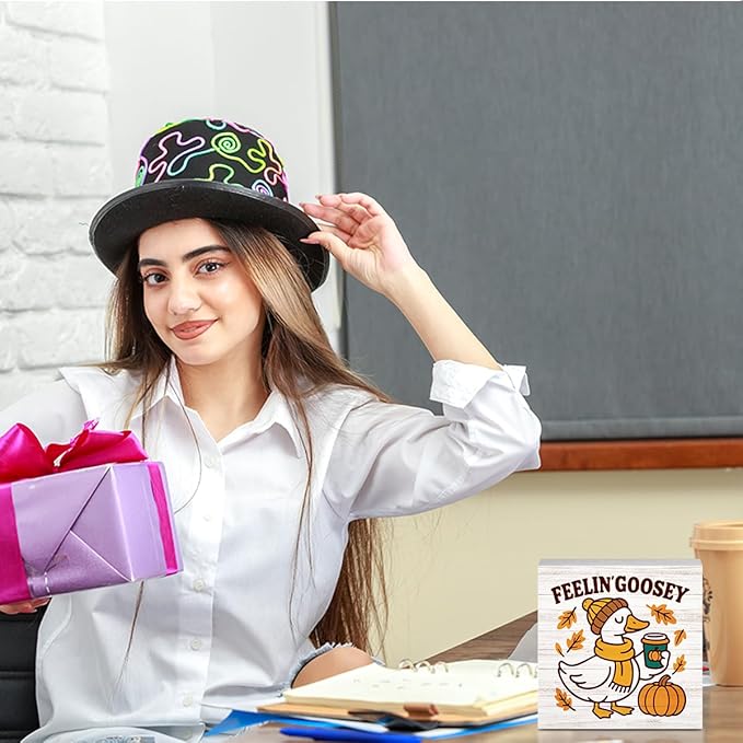 - 【Perfectly Cute Size】Our fall silly goose decor measuring 5 x 5 inches, perfect and cute, sizethis sign fits seamlessly on desks or shelves in offices.