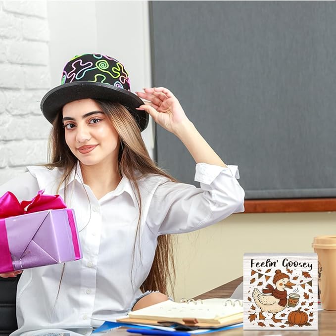 Feelin' Goosey Fall Decor for Home Office, Funny Silly Goose Fall Decorations, Autumn Thanksgiving Decorations Gifts for Goose Animals Lovers 5 x 5 inches (Tub 1713)