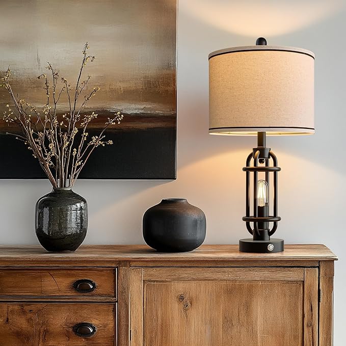 - Versatile Table Lamps: Crafted with heavy-duty metal and premium linen shade, this table lamps for living room blends industrial lamp design with vintage lamp charm. This bedside lamps warm, glare-free light elevates any space—perfect as a living room lamp centerpiece or cozy bedside table lamp bedroom lamp
