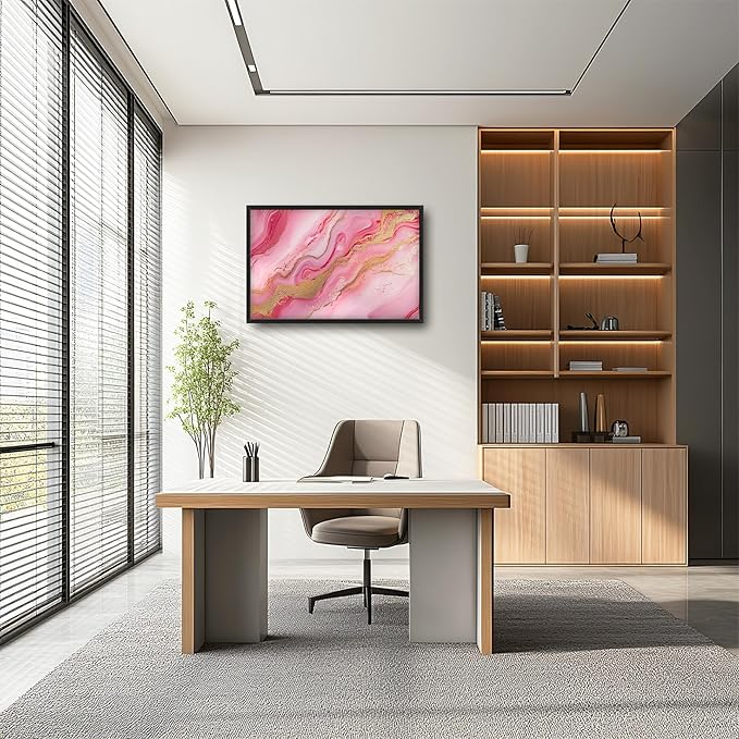 Lovira Abstract Pink Marble Large Wall Art Gold Wave Canvas Wall Decor Pictures Prints Painting Framed Modern Artwork for Living Room Bedroom Bathroom Office 24"x36"
