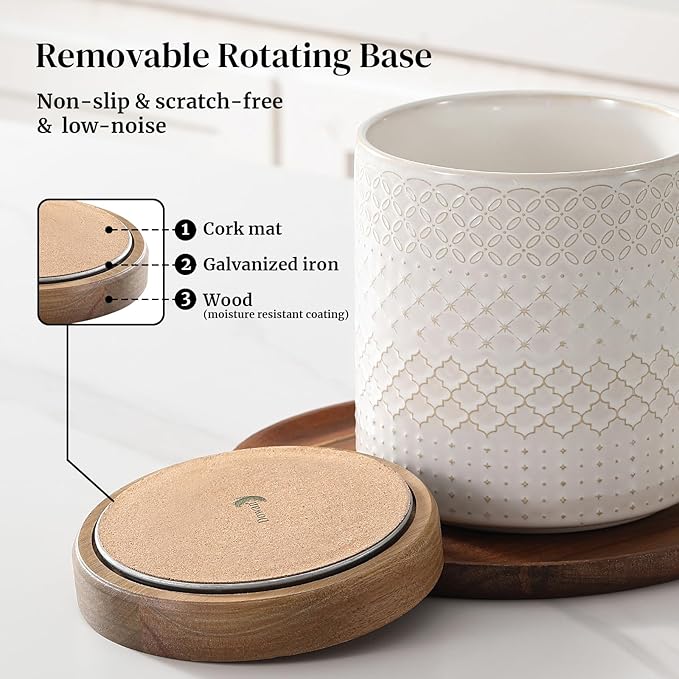 - 360° Rotating Convenience: Simplify your cooking routine with our rotating utensil holder! No more fumbling for tools—this kitchen utensil holder features a smooth, silent spin for a noise-free experience. Designed like a lazy susan, the spinning utensil holder allows you to easily grab the right spatula or tool with just a quick turn. Keep your kitchen organized and make cooking more efficient with this practical cooking utensil holder
