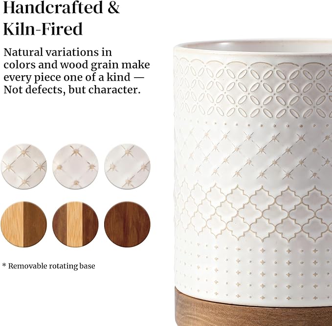 - Stable & Fall-Prevention Design: Enjoy excellent stability with our utensil crock, featuring a weighted bottom made from durable, removable wood. This design ensures your tools stay upright, preventing tipping during busy kitchen moments. The sturdy construction of this ceramic utensil holder keeps your kitchen organized, ensuring easy access to your tools