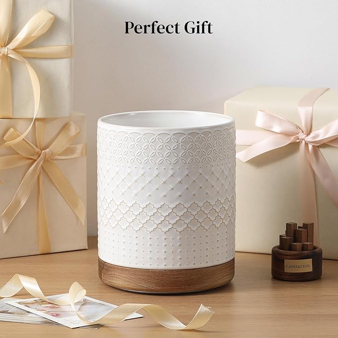 - Stylish Versatility for Every Home: Elevate your space with this white utensil jar, a multifunctional piece that serves as a kitchen utensil holder for countertop, a chic planter, an elegant vase, or a unique wine chiller. Blending farmhouse kitchen decor with timeless charm, it enhances your home’s aesthetic while offering practical storage. Ideal as a spatula holder, ceramic crock, this statement piece transforms your space effortlessly