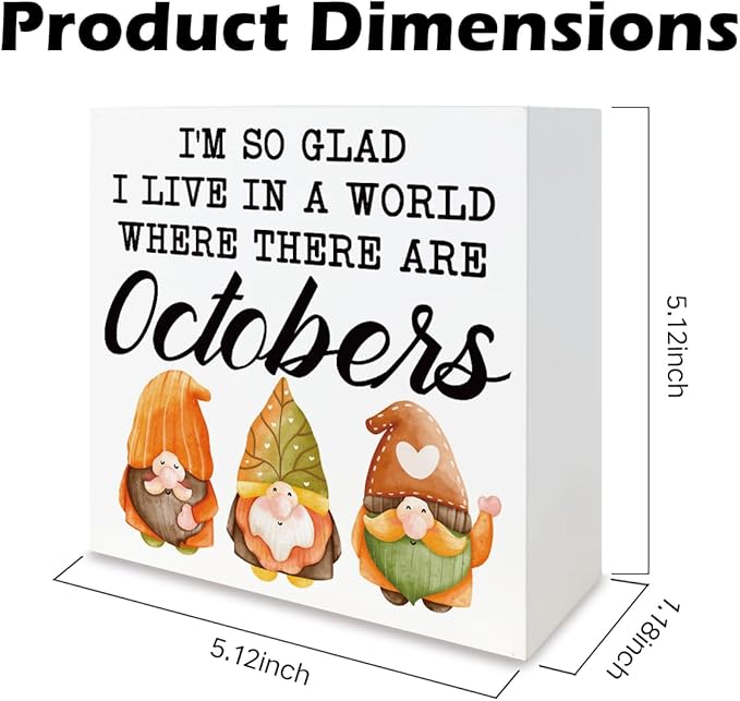 Fall Wood Sign, Gnome Decor, Rustic Farmhouse Fall Decoration, Autumn Thanksgiving Wooden Decors, Home Office Decor Tabletop, I'm So Glad I Live in A World Where There are Octobers Wood Signs A12
