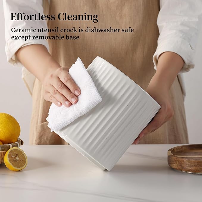 - Stable & Fall-Prevention Design: Enjoy excellent stability with our utensil crock, featuring a weighted bottom made from durable, removable wood. This design ensures your tools stay upright, preventing tipping during busy kitchen moments. The sturdy construction of this ceramic utensil holder keeps your kitchen organized, ensuring easy access to your tools