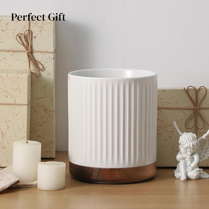 - Stylish Versatility for Every Home:Elevate your space with this white ceramic jar—a multifunctional piece that serves as a kitchen utensil holder for countertop, chic planter, elegant vase, or unique wine chiller. Designed with a ridged texture, it adds a modern, elegant touch to your kitchen counter and blends seamlessly with farmhouse or contemporary decor. Ideal as a spatula holder or ceramic crock, it offers both style and practical storage