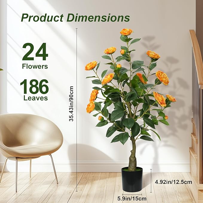 - Low Maintenance - No watering, pruning, or sunlight required! These faux camellia flowers trees are ideal for busy individuals or those without a green thumb, offering year-round greenery with zero effort.