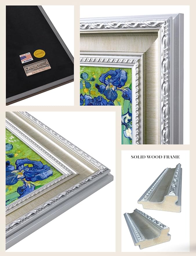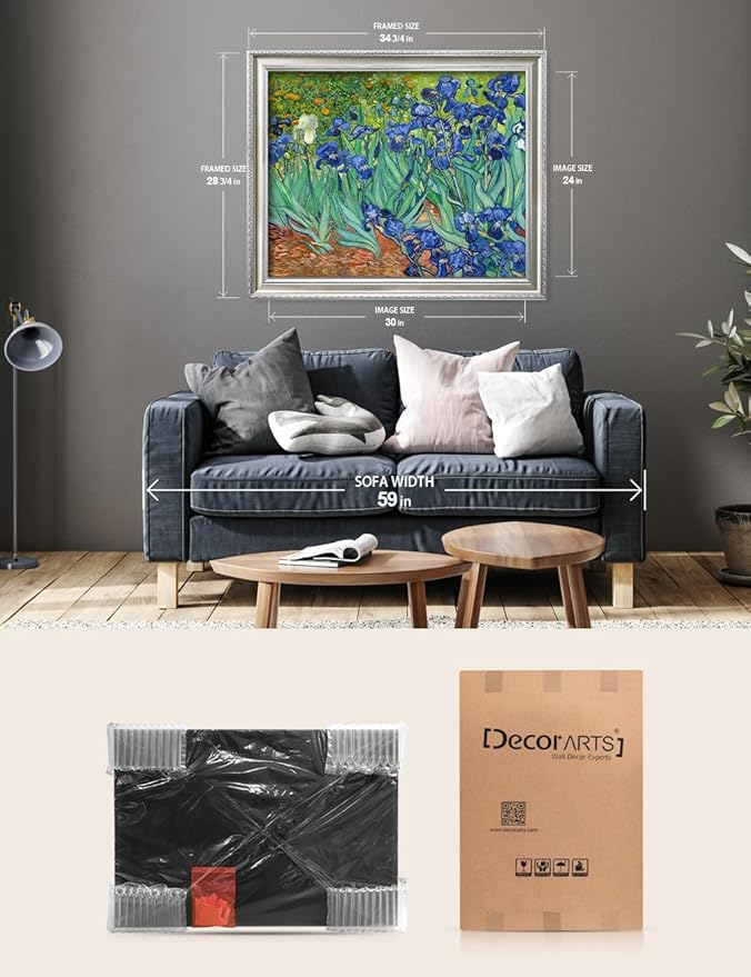 DECORARTS - Irises in the Garden by Vincent van Gogh, Museum-Quality Giclee Canvas Print with Silver Solid Wood Frame, 34.75 x 28.75 in, Ready to Hang, Made in USA