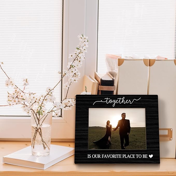 Couple Picture Frame 5x7, Couple Photo Frame, Christmas Birthday Couples Gifts for Him Her, Together is Our Favorite Place to Be Black Wooden Picture Photo Frames for Desk Home Room Decor