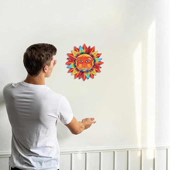 - Ideal Size and Easy Installation: Measuring 12" L x 12" H, our metal wall art can be used as a standalone piece or combined with others to create a stunning display. With a hook on the back, this sun face wall art can be easily hung anywhere, making it a versatile addition to your space.
