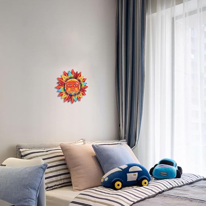 - Warm Sun Art Design: This sun art decoration is featured a warm, friendly face surrounded by sunflower petal-shaped flames. Its warm-toned color scheme emits a dazzling light, bringing energy and illumination to your life.