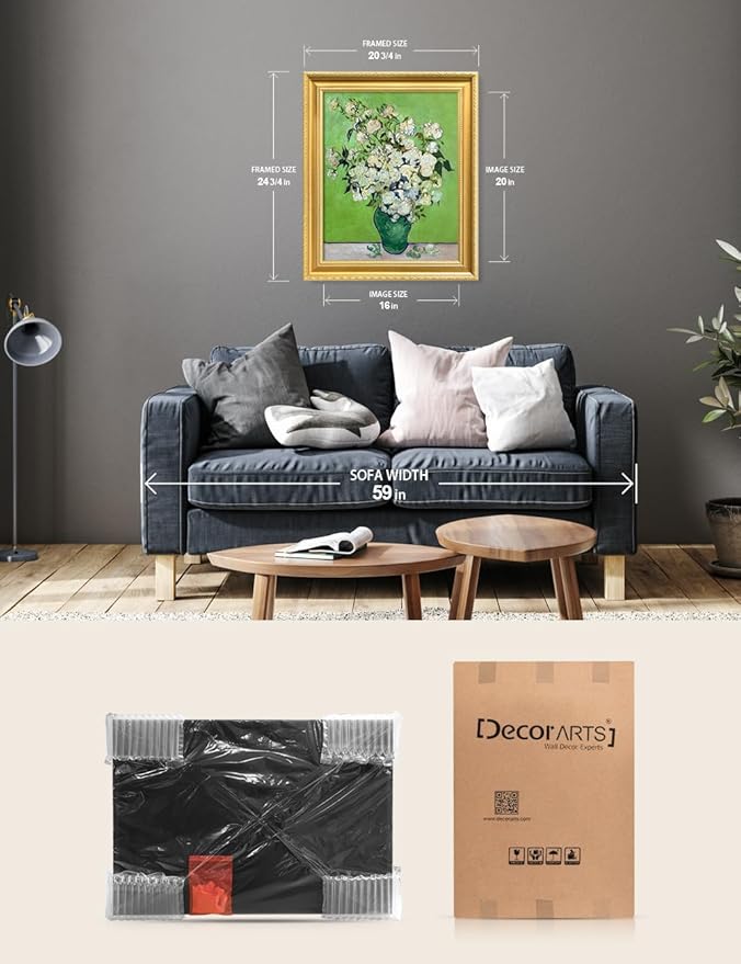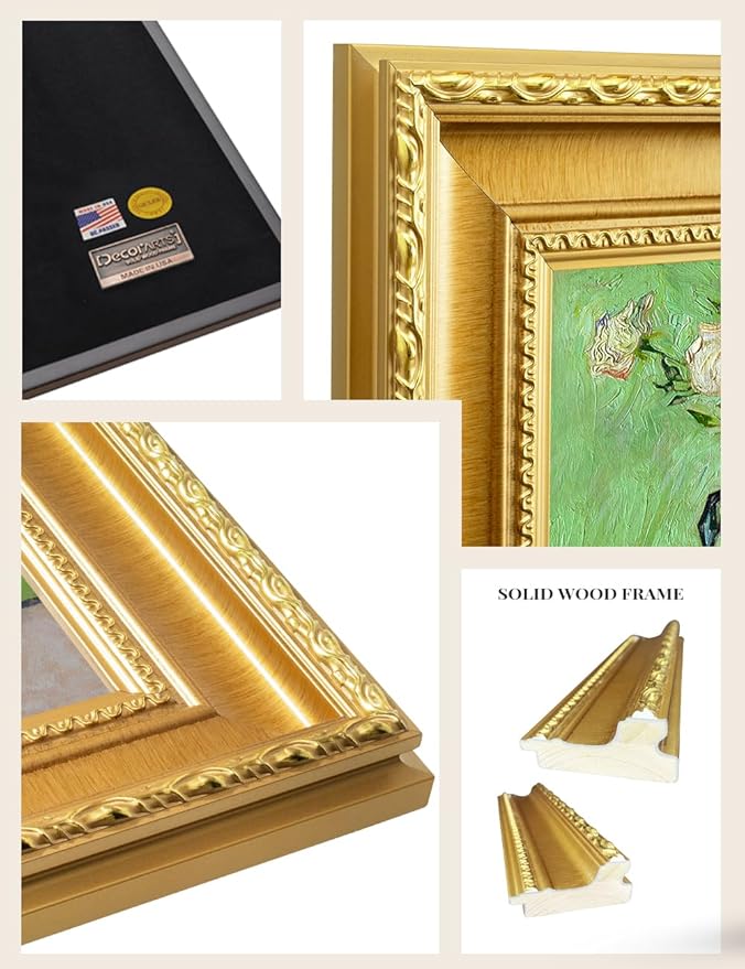 DECORARTS - Pink Roses in a Vase by Vincent Van Gogh. Giclee Print on Acid-Free Canvas in Gold Solid Wood Frame. Picture Size: 16x20, Total Size: 24.75x20.75, Made in USA