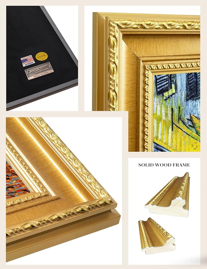 DECORARTS - Cafe Terrace at Night by Vincent Van Gogh. Giclee Print on Acid-Free Canvas in Gold Solid Wood Frame. Picture Size: 16x20, Total Size: 24.75x20.75, Made in USA