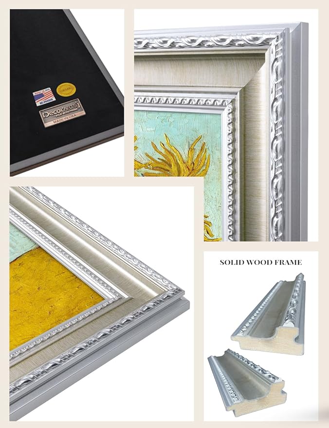 DECORARTS - Twelve Sunflowers by Vincent van Gogh, Museum-Quality Giclee Canvas Print with Silver Solid Wood Frame, 34.75 x 28.75 in, Ready to Hang, Made in USA