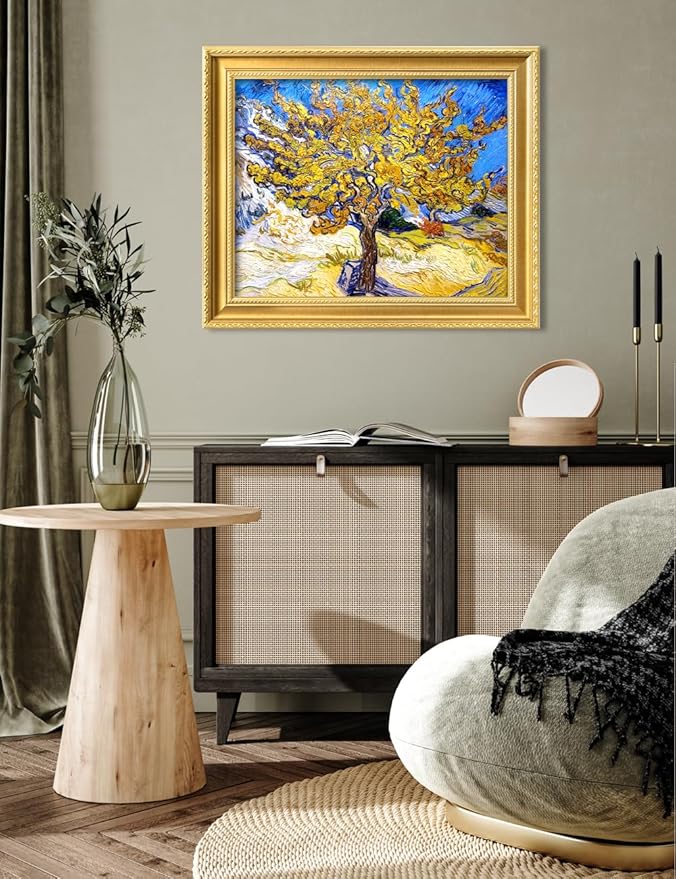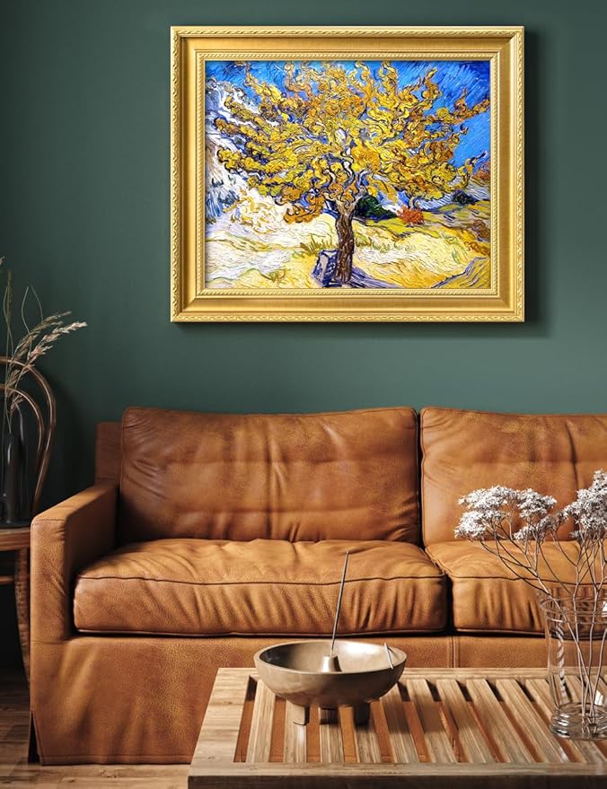 DECORARTS - The Mulberry Tree by Vincent Van Gogh. Giclee Print on Acid-Free Canvas in Gold Solid Wood Frame. Picture Size: 20x16, Total Size: 24.75x20.75, Made in USA