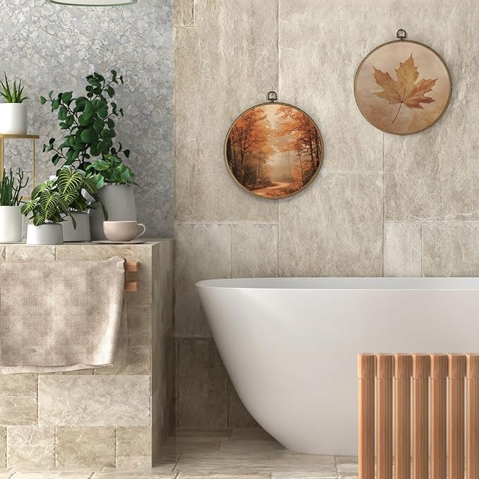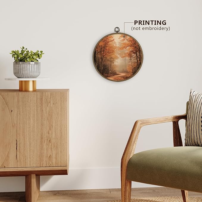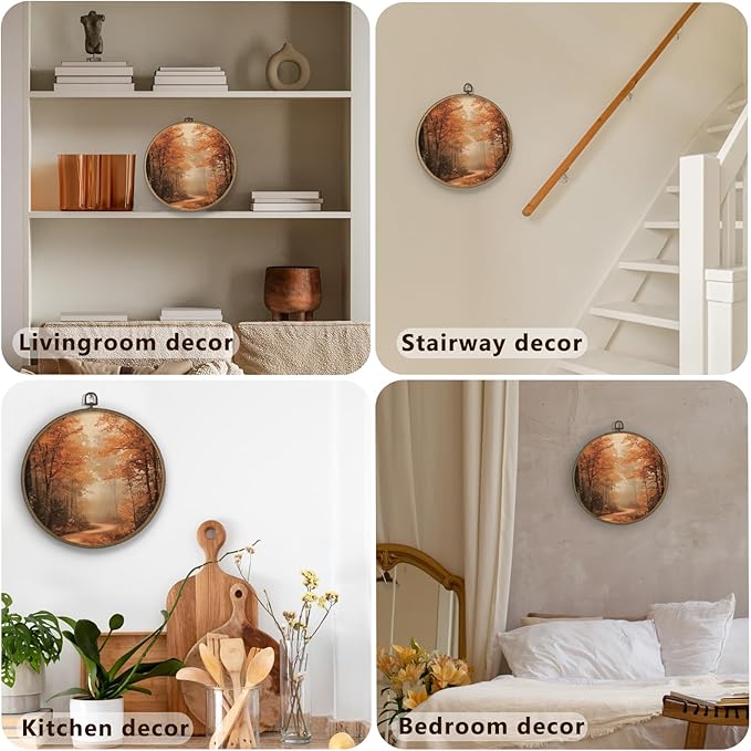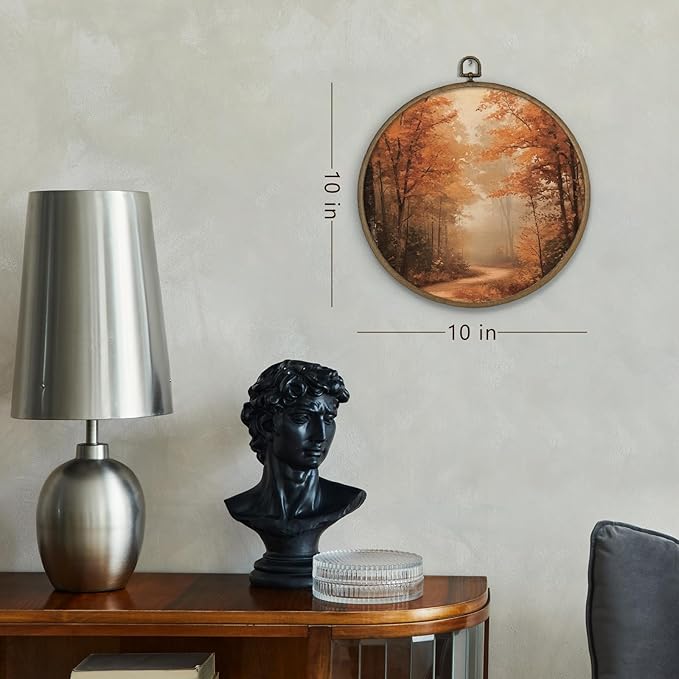 Gnmduw Rustic Fall Wall Art Framed, Fall Pictures Wall Decor, Vintage Autumn Landscape Round Hanging Wall Decor, Moody Halloween Canvas Prints Art for Living Room Bathroom Gallery Bedroom, 10x10 Inch