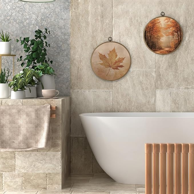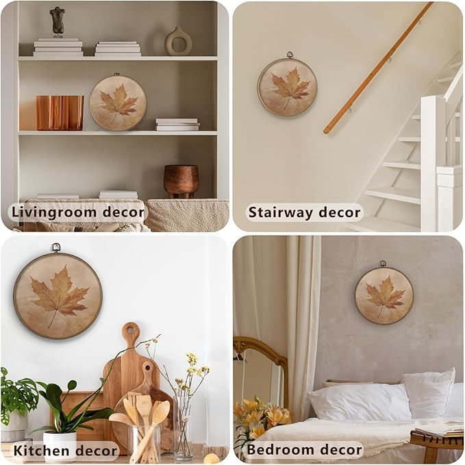 Gnmduw Fall Leaf Wall Art Framed, Fall Wall Decor, Rustic Thanksgiving Autumn Round Hanging Wall Decor, Halloween Autumn Canvas Prints Art for Cottage Core Living Room Bathroom Bedroom, 10x10 Inch