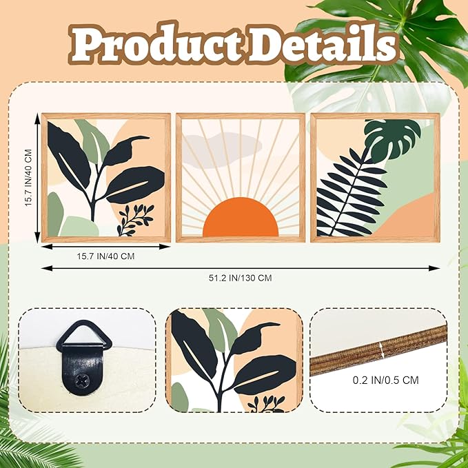 - Easy to Install: The wooden boho wall art decor has a triangular hook on the back, It is lightweight and convenient, so you can hang them directly on the hook, not dropping easily, allowing you to install and disassemble, saving time