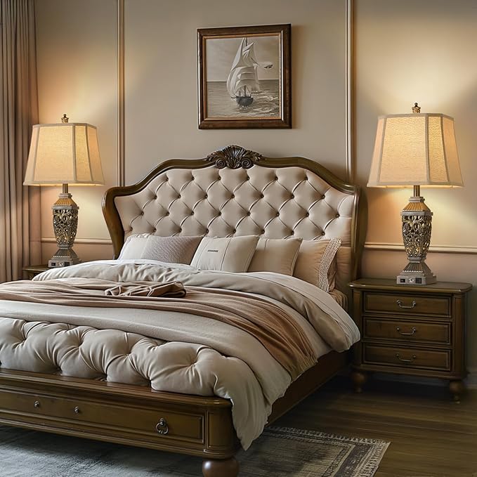- Industrial Vintage Aesthetics: This table lamp combines timeless vintage elegance with modern functionality. The beautifully carved base and neutral linen lampshade make it an eye-catching piece in any room, whether placed in a bedroom, living room, or office. The rustic design enhances the aesthetic appeal of your space, creating a warm and welcoming atmosphere with soft, ambient light. The unique craftsmanship and quality materials ensure that this lamp will be a standout piece in your home decor for years to come.