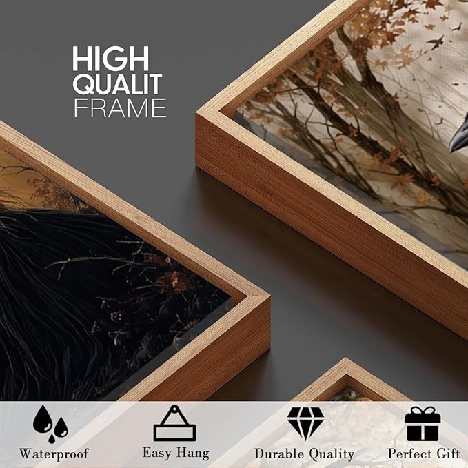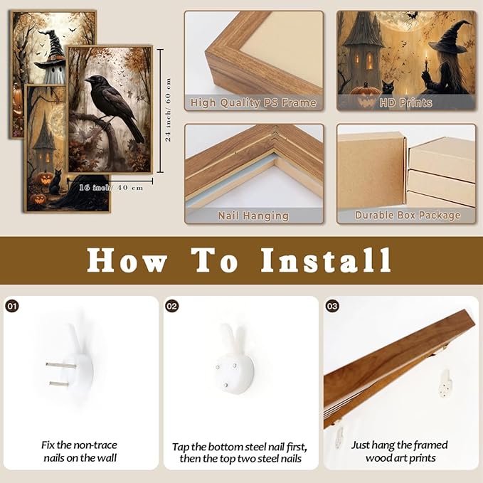 - 【Halloween Painting for Many Scenes】Ideal for upgrading your space during Halloween season! Whether hung in the living room to set the mood for gatherings, the bedroom to add a touch of spooky charm, or the entryway to welcome trick-or-treaters, this art set seamlessly fits farmhouse, gothic, or retro home styles. It’s also a standout decoration for Halloween parties, haunted houses, or themed cafes.