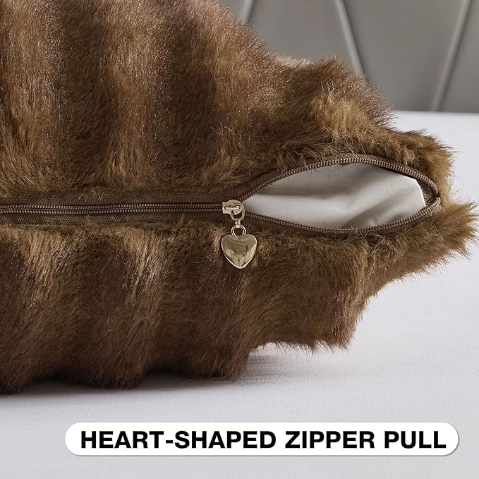 FUTEI Brown Decorative Throw Pillow Covers 16x16 Inch Set of 2,Soft Fluffy Faux Mink Fur Dyeing Striped Textured Cushion Case,Modern Home Decor for Couch Bed Living Room