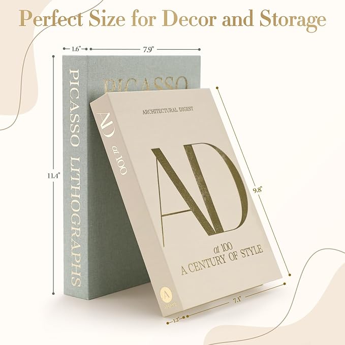 - Realistic Book Design with Hidden Storage:Designed to perfectly mimic real books, these decorative boxes blend beautifully into your home while cleverly concealing your personal items. Available in two practical sizes—11.4" × 7.9" × 1.6" and 9.8" × 7.1" × 1.2"—they offer a compact, space-saving solution that combines visual appeal with everyday functionality.