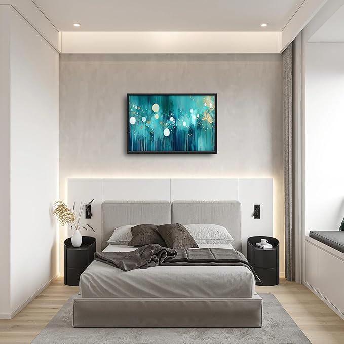 Lovira Abstract Teal and Gold Large Wall Art Turquoise Canvas Wall Decor Pictures Prints Painting Framed Home Artwork for Living Room Bathroom Bedroom Kitchen Office 24"x36"