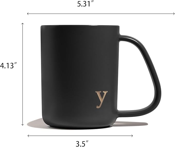 COLLECTIVE HOME - Ergonomic Handle Ceramic Mug, 15 oz Personalized Coffee Cup with Golden Initial, Microwave & Dishwasher Safe, Elegant Monogram Tea Mug in Gift Box for Home & Office (Black-y)