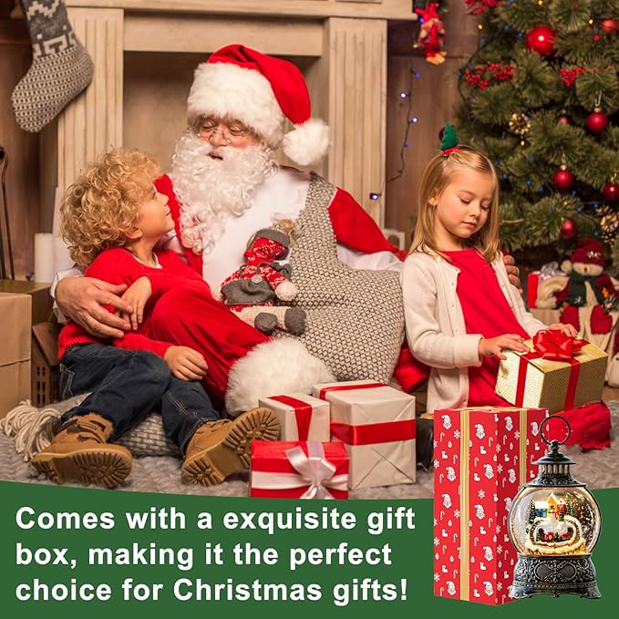 - ๐ถ ใFestive Music & Hassle-Free Timerใ Features a 3-way switch (Music/Timer/Off). Set to "Timer" for 6 hours of illumination, swirling glitter, and 8 classic holiday carols, followed by an 18-hour auto-off. It magically relights at the same time the next day.