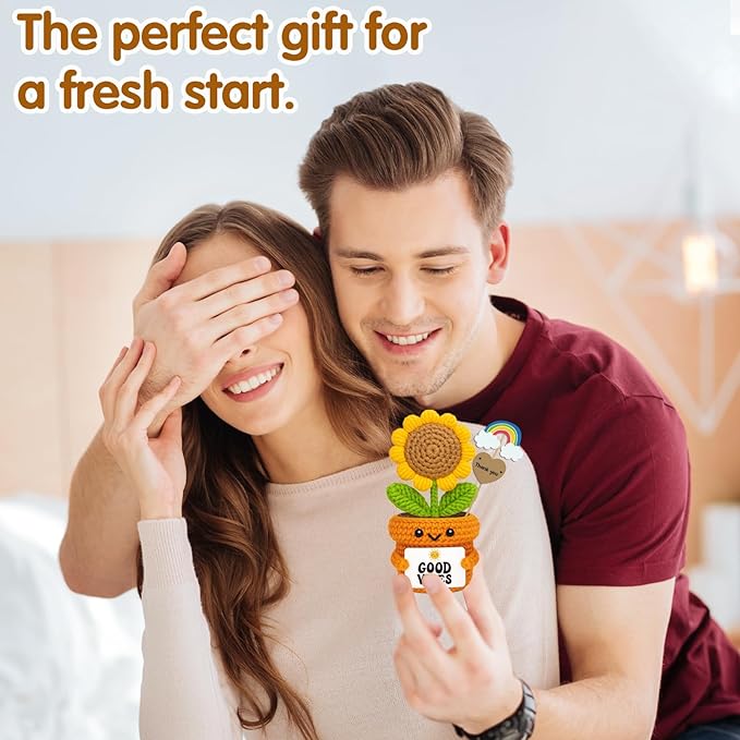 - Handmade with Heart: Crocheted with care, each sunflower doll is unique and comes with a positive vibes message card. A small but powerful gesture of care.