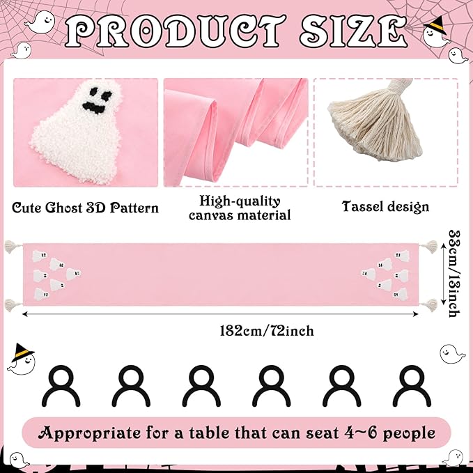 - Size: our pink spooky ghost halloween table runner measures 13 x 72 inches, suitable for tables that seat 4-6 people, better match your table and bring you a pleasant dining experience on the holiday