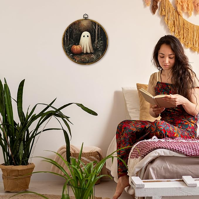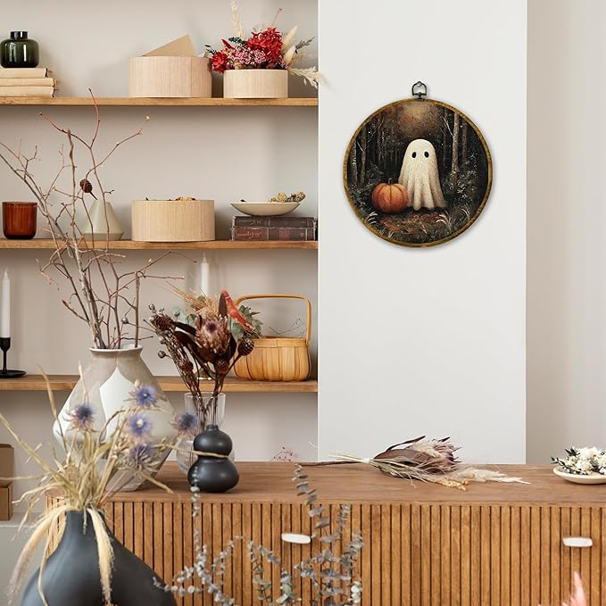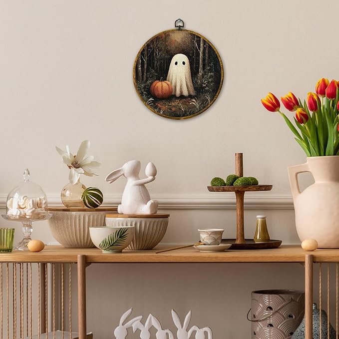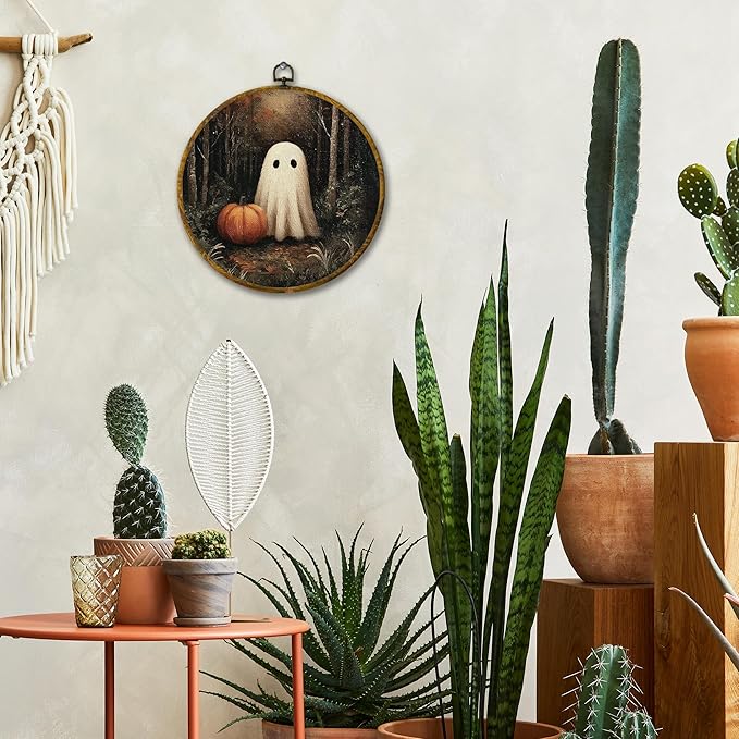 Mcehtle Vintage Halloween Dark Forest With Ghosts Wall Art Decor, Rustic Farmhouse Cottagecore Framed Canvas Prints 10x10, Dark Academia Round Wall Hanging Artwork Decorations for Bedroom Gallery