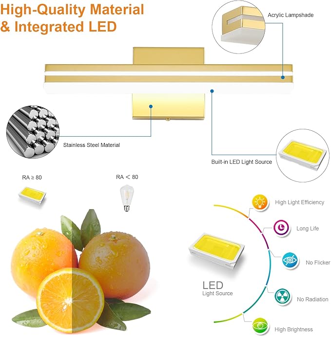 - 【Application】With a modern minimalist design, this vanity light is versatile for multiple scenarios—ideal for bathrooms, mirror cabinets, powder rooms, bedrooms, living rooms, and more. It instantly illuminates and elevates your living spaces.