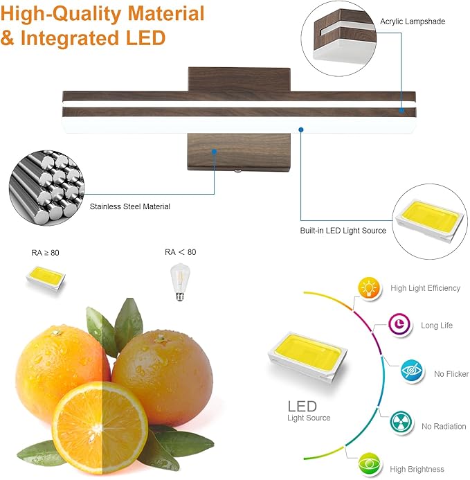 - 【Energy Saving】This 15W LED vanity light combines low power consumption with high performance. Despite a power rating of just 15W, it emits illumination brightness that surpasses conventional 80W bulbs. Environmentally friendly by design, it significantly reduces energy consumption.