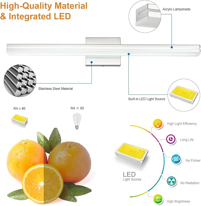 - 【Energy Saving】This 24W LED vanity light combines low power consumption with high performance. Despite a power rating of just 24W, it emits illumination brightness that surpasses conventional 120W bulbs. Environmentally friendly by design, it significantly reduces energy consumption.