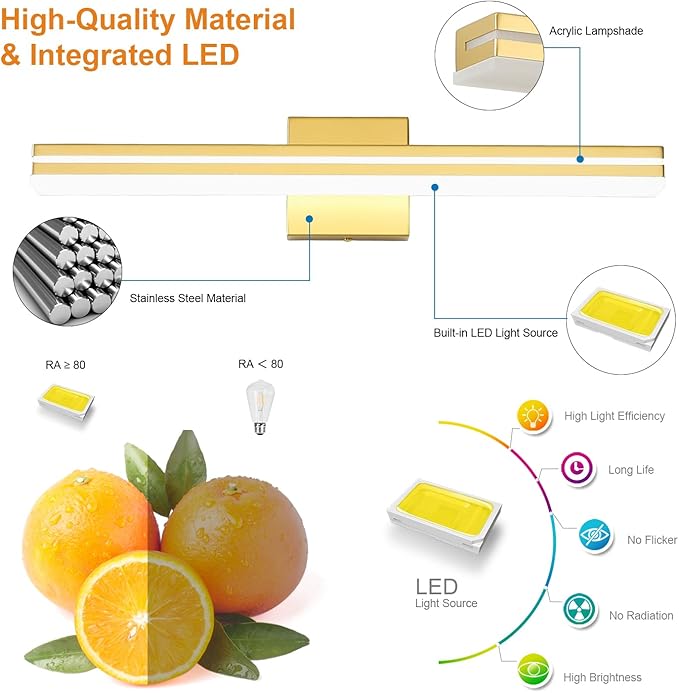 - 【Energy Saving】This 18W LED vanity light combines low power consumption with high performance. Despite a power rating of just 18W, it emits illumination brightness that surpasses conventional 100W bulbs. Environmentally friendly by design, it significantly reduces energy consumption.