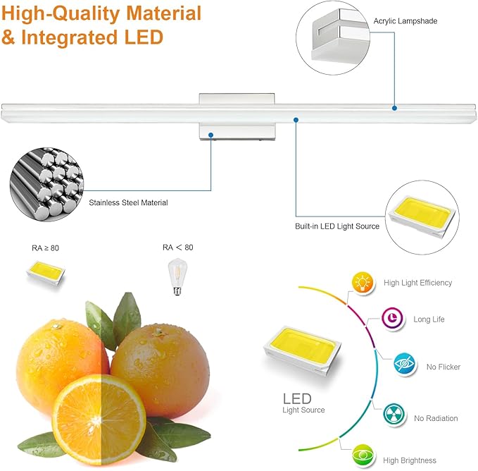 - 【Energy Saving】This 36W LED vanity light combines low power consumption with high performance. Despite a power rating of just 36W, it emits illumination brightness that surpasses conventional 180W bulbs. Environmentally friendly by design, it significantly reduces energy consumption.