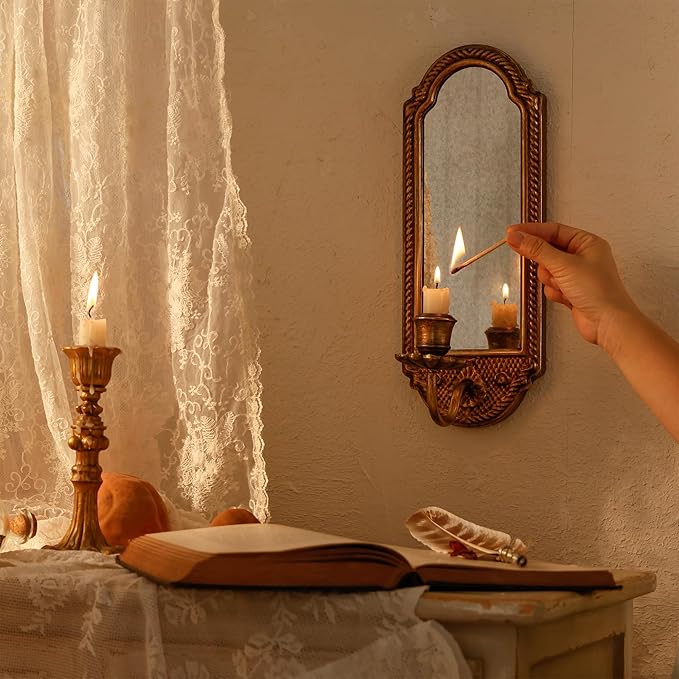 - Functional Decorative Mirror Design - The built-in mirror enhances candlelight glow (candles not included), perfect for creating a warm, romantic atmosphere in dining rooms, entryways, or wedding decor.