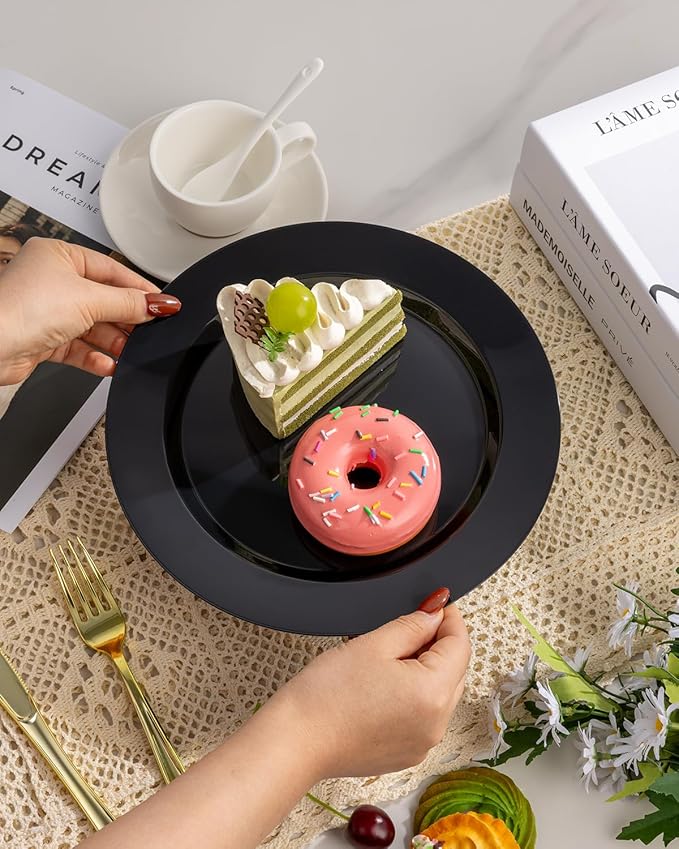 - ELEGANT DESIGN FOR VERSATILE OCCASIONS - With its elegant black base, this plastic plate effortlessly fits any occasion, from vibrant parties and elegant weddings to casual gatherings. Despite its plastic composition, these party supplies radiate the sophistication of ceramic, elevating the event's allure and making a lasting impact on guests