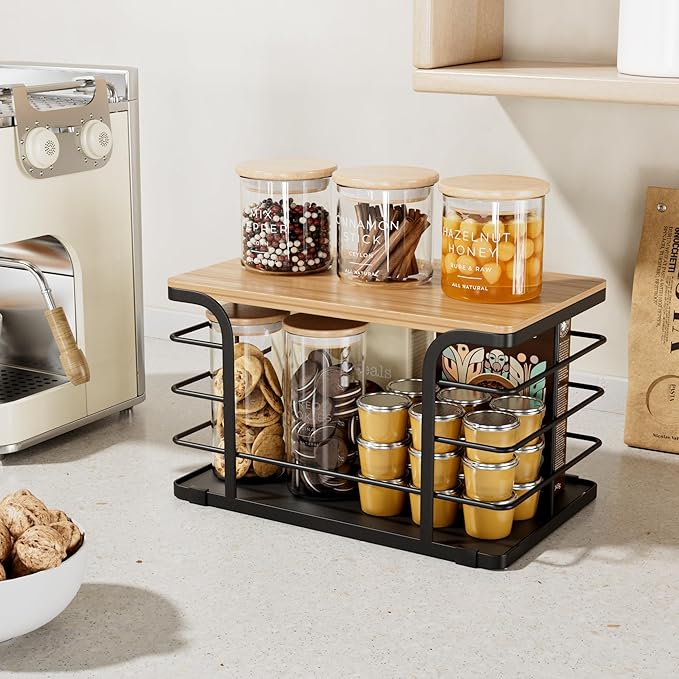 - Stackable Pantry Organizers: Crafted from natural bamboo & stainless steel, waterproof, rust-proof, sturdy & stylish. Large front openings + hollow-out design let you easily view and access stored items. Ideal for pantry organizers and storage needs