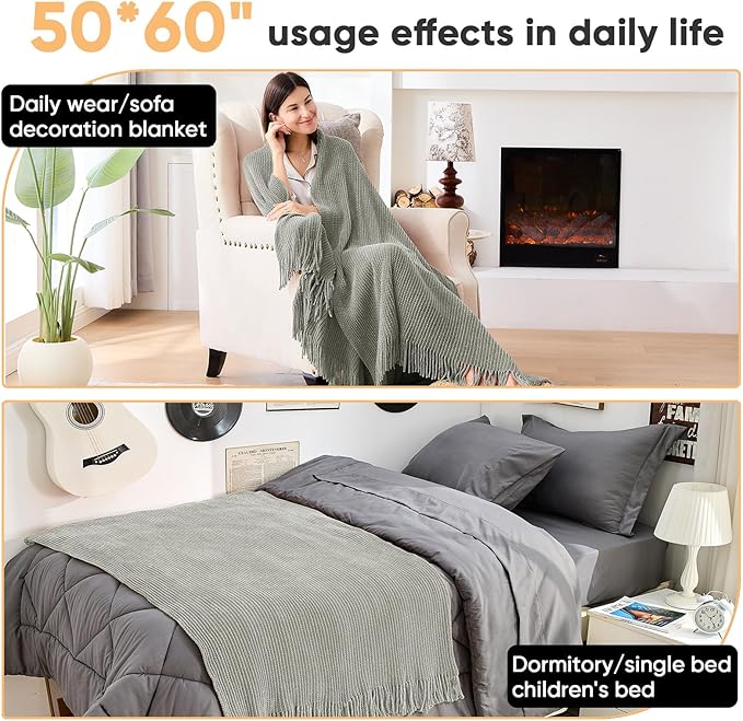 - 【FANTASTICAL COMBINATION】This farmhouse-style knitted throw blanket features a unique knitted stripe pattern and delicate tassels, offering a timeless design perfect for home dcor and holiday styling. As Thanksgiving and Christmas approach, drape this Boho-inspired throw blanket over your dining chairs or table, adding a stylish festive touch. After the celebrations, it’s the ideal cozy companion for resting on your bed, sofa, or couch, bringing ultimate comfort and warmth.