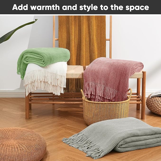 - 【UPGRADED CHENILLE YARN WITH 550GSM WEIGHT】After extensive testing, we’ve upgraded the thickness of this throw blanket to 550GSM, much thicker than the common 250GSM throws found on the market, providing superior warmth even in late fall and winter. Made from 100% polyester and crafted with a new, Chunky chenille yarn, the weave is tighter and the texture is softer and fluffier. It feels like lambswool—skin-friendly, breathable, and a complete upgrade in comfort and quality.