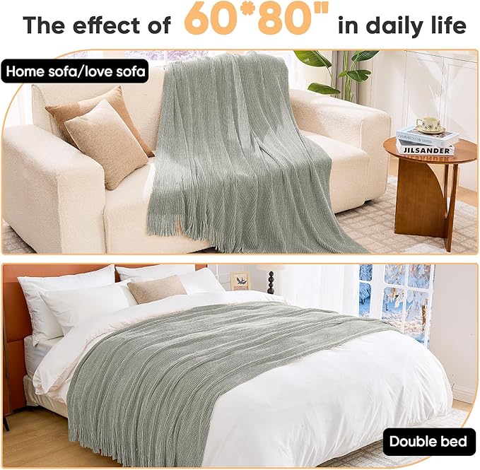 - 【FANTASTICAL COMBINATION】This farmhouse-style knitted throw blanket features a unique knitted stripe pattern and delicate tassels, offering a timeless design perfect for home dcor and holiday styling. As Thanksgiving and Christmas approach, drape this Boho-inspired throw blanket over your dining chairs or table, adding a stylish festive touch. After the celebrations, it’s the ideal cozy companion for resting on your bed, sofa, or couch, bringing ultimate comfort and warmth.