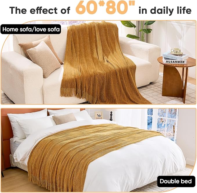 - 【UPGRADED CHENILLE YARN WITH 550GSM WEIGHT】After extensive testing, we’ve upgraded the thickness of this throw blanket to 550GSM, much thicker than the common 250GSM throws found on the market, providing superior warmth even in late fall and winter. Made from 100% polyester and crafted with a new, Chunky chenille yarn, the weave is tighter and the texture is softer and fluffier. It feels like lambswool—skin-friendly, breathable, and a complete upgrade in comfort and quality.