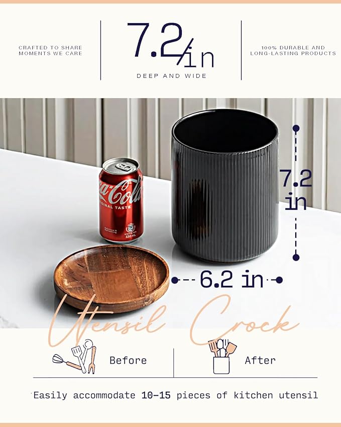 - [Elegant Kitchen Utensil Holder] Designed with ridged texture, this utensil holder looks just modern & elegant standing on your kitchen counter, fits into your kitchen well