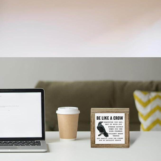 Be Like A Crow Sign, Crow Sign, Inspirational Wood Box Decor, Motivational Gift For Friends Colleague, Country Farmhouse Style Wood Box Decor Signs, Funny Farmhouse Home Office Decoration