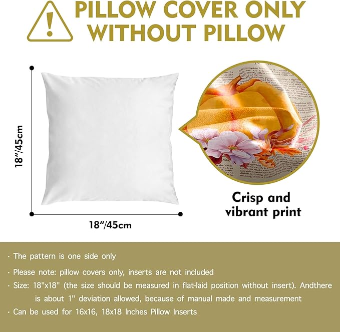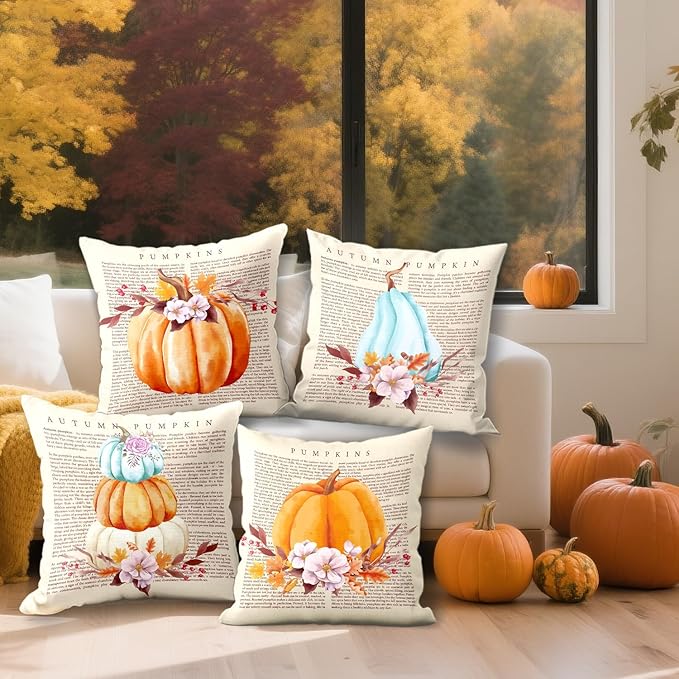 Autumn Thanksgiving Fall Home Decor, Vintage Pumpkin Throw Pillow Covers Set of 4 (18x18 Inch), Cozy Couch Pillow Cases for Indoor & Outdoor, Holiday Accents