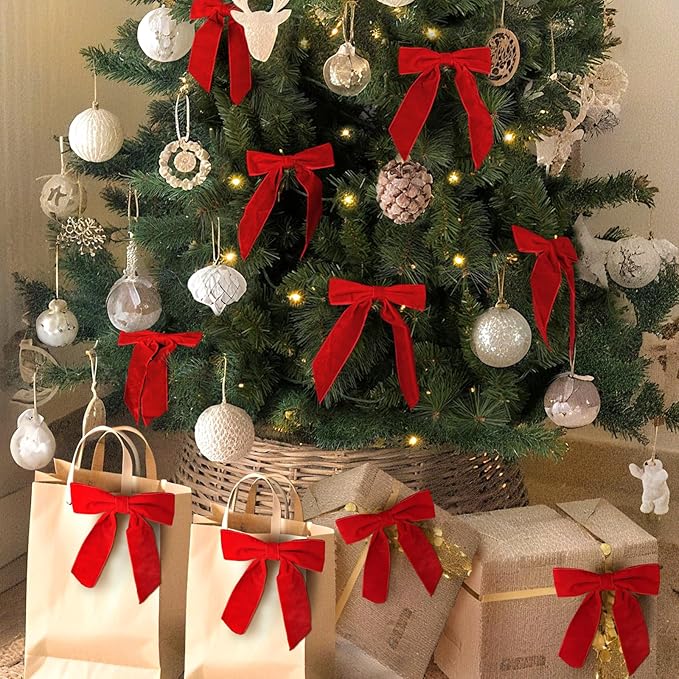- ELEVATE HOLIDAY DECOR - With a twist tie on the back, the bows effortlessly elevate the decor on your Christmas tree, garland and wreaths.