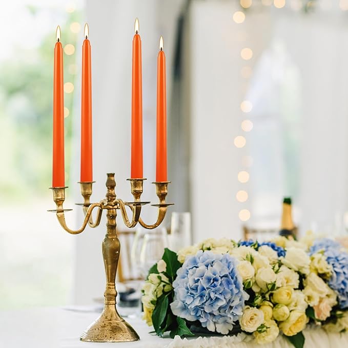 - 1. 【Premium 10-Inch Taper Candles - Set of 12】 This value pack includes 12 elegant orange taper candles measuring 10 inches tall - perfect for creating striking centerpieces and seasonal displays. Each candle burns cleanly for extended periods.