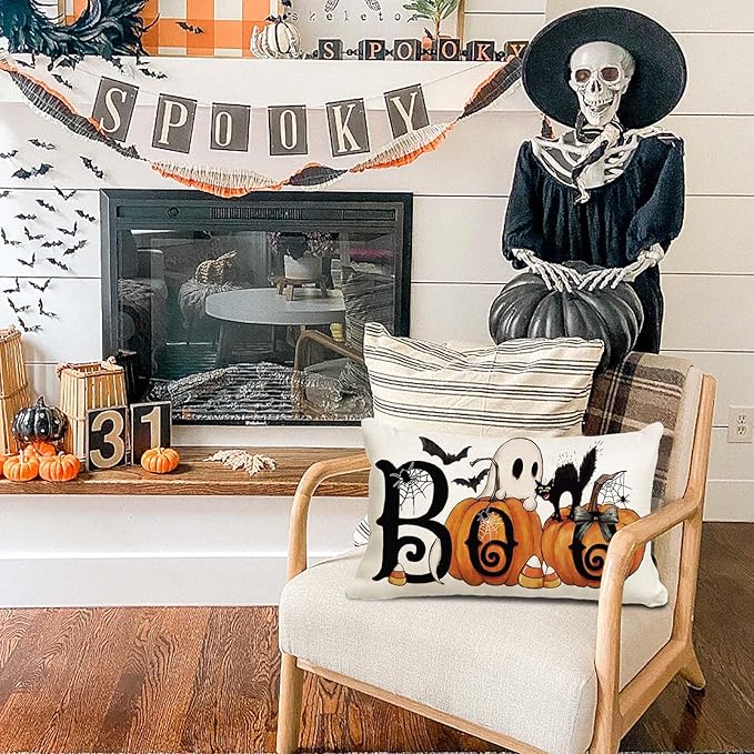 Baccessor Halloween Pillow Cover 12x20 Inch, Boo Ghost Spooky Lumbar Pillow Case Halloween Decor for Cushion Sofa Couch Indoor Outdoor Decoration 1 Piece